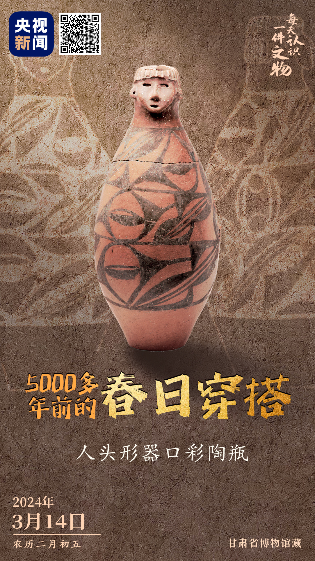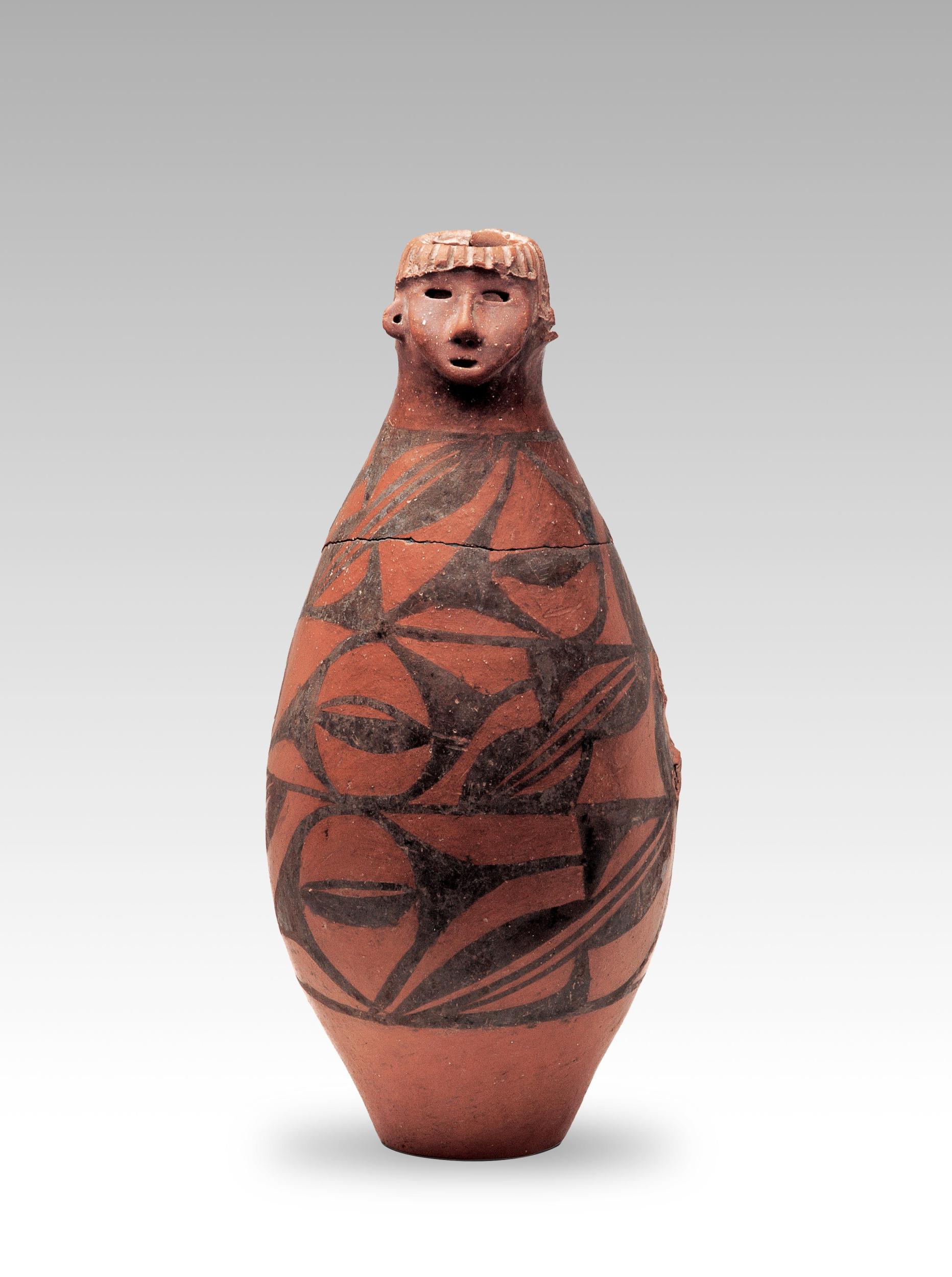 △人頭形器口彩陶瓶 甘肅省博物館藏