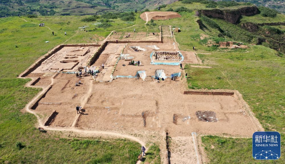 這是2022年6月10日拍攝的甘肅省隴南市禮縣四角坪遺址考古發掘現場(無人機照片)。新華社記者 郎兵兵 攝