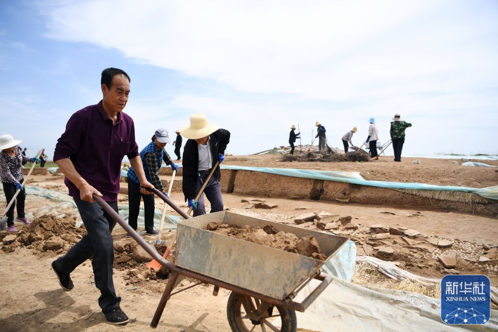 工作人員在甘肅省隴南市禮縣四角坪遺址考古發掘現場工作(2022年6月10日攝)。