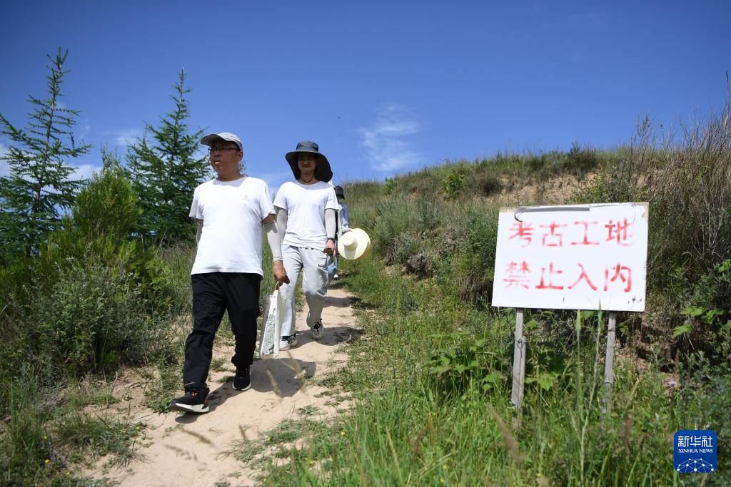 四角坪遺址考古領隊、甘肅省文物考古研究所副研究館員侯紅偉(前)帶領考古專業研究生在甘肅省隴南市禮縣四角坪遺址考古發掘現場工作(2022年6月10日攝)。新華社記者 郎兵兵 攝