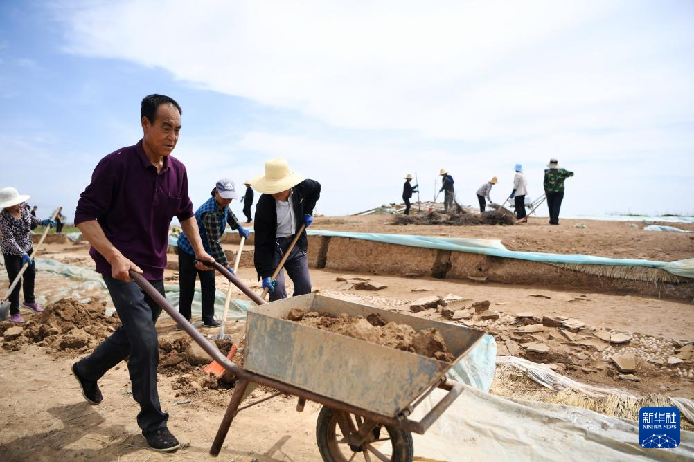 工作人員在甘肅省隴南市禮縣四角坪遺址考古發掘現場工作(2022年6月10日攝)。新華社記者 陳斌 攝