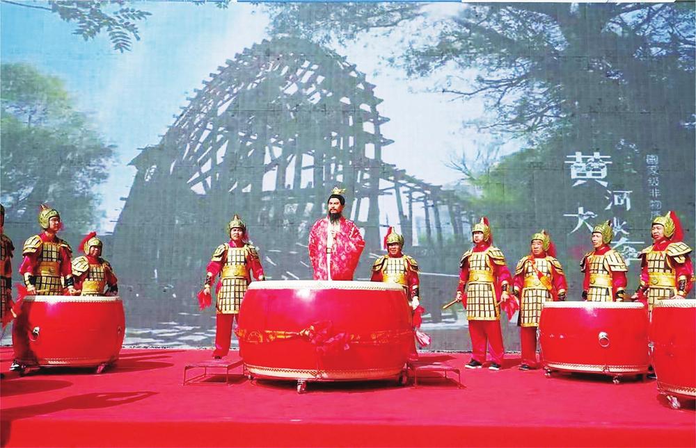 開場演出《黃河戰鼓》氣勢磅礴、有聲有色(省文旅廳供圖)