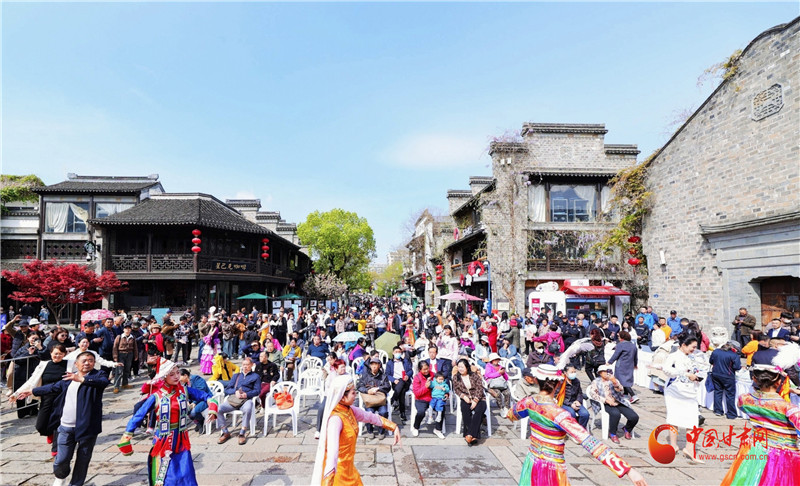 “快閃+路演”主題宣傳由甘肅民族風舞蹈串燒的快閃活動拉開序幕,西北特色民族舞蹈與江南風情老街相遇,記憶里的南方與北方相融,這樣一幅情景相依又充滿矛盾的特殊“舞臺畫卷”,迅速吸引了景區大批游客駐足觀賞。