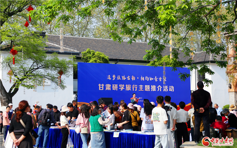中國甘肅網4月9日訊(西北角·中國甘肅網記者 程健)4月9日下午,由甘肅省文旅廳組織的“逐夢絲路古韻·相約如意甘肅”研學旅行專題推介團隊來到江蘇省鎮江市西津渡鑒園廣場,在“快閃+路演”主題宣傳活動中與鎮江市民見面。