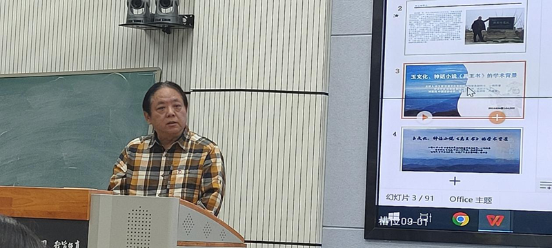 馮玉雷一直認認真真,埋頭干事。他心中有一個非常宏大的目標,向著這個目標行進過程中,腳踏實地。前幾年他在西北師范大學首開公選課《中國玉文化》,把玉文化作為專門的一門課來講,具有開拓性。玉文化作為一門學科,在全國各大高校此前還沒有先例,馮玉雷先生做了一件非常有意義的事情。這次講座對我非常有啟發。從這門課的內涵來講,其實又是一個延續:對傳統文化也好,考古文化也好,對甘肅省乃至整個中華大地,從玉文化開始出現,發展到現在,就是一種延續。玉和玉器至堅至柔,至圣至潔,卻默默無言,但是它們告訴了我們很多以前不知道或者沒有意識到的信息,從重見天光的那一刻起,有無數信息在源源不斷的釋放,就看人們如何理解,如何解讀。如果不研究、發現這些玉器的內涵,那還是相當于某種意義上的沉睡。馮玉雷創作小說,研究玉文化,還組織十幾次考察活動,國內的有些大家都參與,這像不像流動的學術討論會?他的長篇小說《禹王書》出版剛剛一個月,據我所知,“玉文化、神話小說《禹王書》的學術背景”講座是首次分享,他把研究成果、創作成果第一時間通過課堂與同學們分享,我仿佛看到他帶著學生勇往直前,義無反顧地向前走著,這本身就是玉文化精神的傳承和發揚!我感覺到馮玉雷《禹王書》的思緒上下翻飛,縱橫馳騁,騰躍五千年。小說中有非常核心的價值內涵,就是玉文化本身所具有的、深深進入到我們民族根脈中的文化內涵,同時,又有就是對文學的一種激發。小說中的神話人物以及他們之間的交流、故事、語言,還有那些玉器,都非常神奇。可以預想,這本書的后延性非常長遠,希望玉文化班的同學能夠在馮玉雷老師帶領下,傳承發揚玉文化,完成從璞玉到玉器的轉化!
