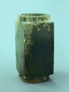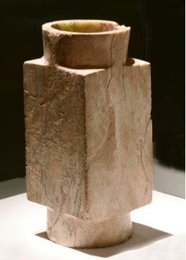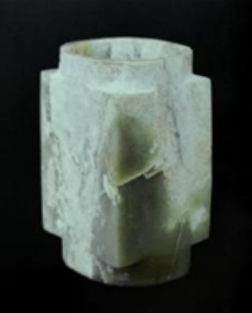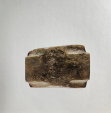 玉琮(編號總0128:2)高4.6~5.2厘米,外方邊長5.5~5.7厘米,內徑大端5.4厘米,小端4.2厘米,形制一端較規整,另一端四角上部不規整。