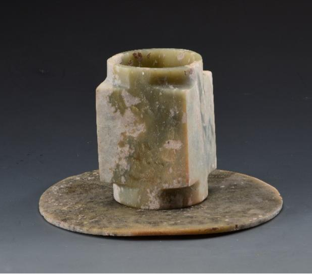 胡家底遺址發現的三對玉璧和玉琮,每對材質基本相同,玉璧中孔可套疊在琮之射端,可見當年有可能套疊使用以祭祀天地。