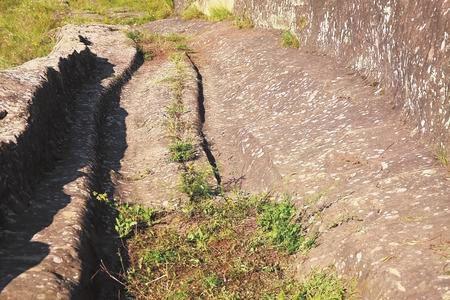 慶陽石道坡古道遺存的車轍印。祿永峰 攝