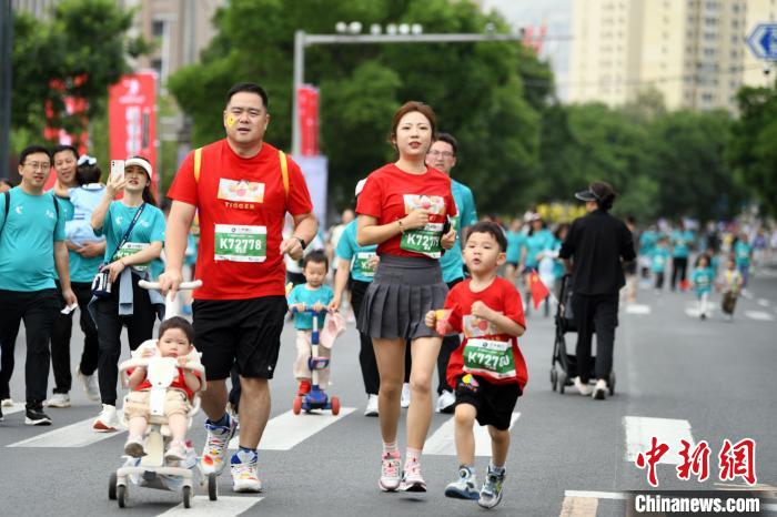 當日7時30分,蘭馬鳴槍開賽,賽道上,不少跑者紛紛玩起Cosplay,“濟公”“奧特曼”“部落酋長”“飛天仙子”等成為攝影師們的抓拍焦點。家庭跑方陣內,一些家長推著嬰兒車或帶著蹣跚學步的孩子奔跑著。“今天帶著寶寶來參賽,就是希望讓他能感受到運動的魅力,同時也期許未來孩子能跑好自己的人生‘馬拉松’。”跑者李思明說。