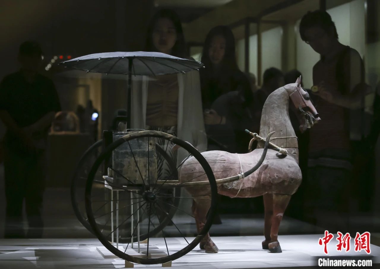 “絲路孔道——甘肅文物菁華展”在中國國家博物館舉行,展覽展出西漢彩繪木軺車。賈天勇 攝