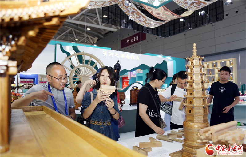 記者在現(xiàn)場(chǎng)看到,大多游客都會(huì)駐足細(xì)細(xì)觀賞微縮版永昌鐘鼓樓,期間,丁沙金會(huì)詳細(xì)介紹木質(zhì)結(jié)構(gòu),并宣傳甘肅文化。他說(shuō),“甘肅的文化,其底蘊(yùn)之深厚,需要慢慢去品味,能在國(guó)際盛會(huì)上推介甘肅,是我的榮幸。”