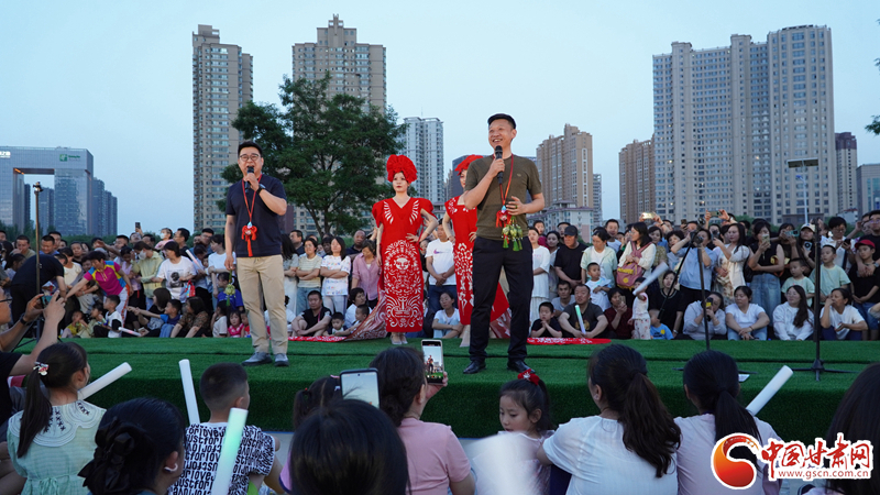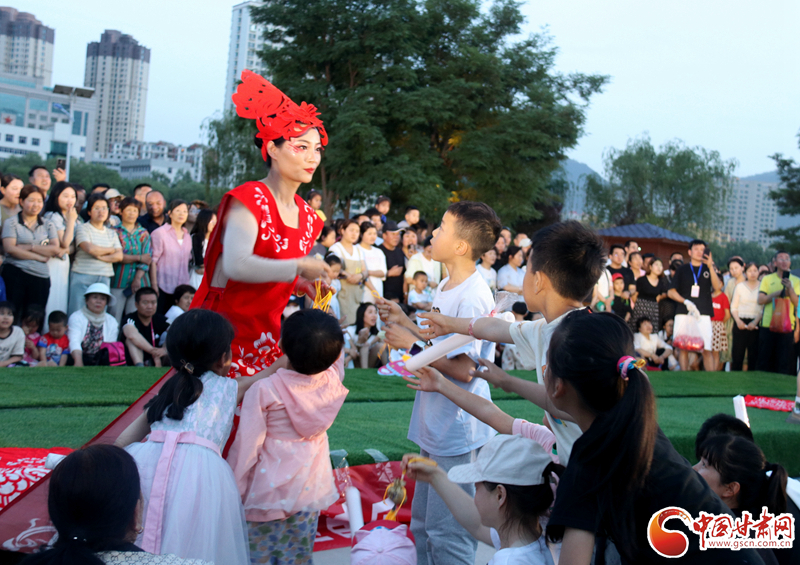 來自鎮原縣文化館的工作人員身著剪紙服飾,為現場觀眾送上慶陽香包,向觀眾們展示慶陽獨特的鄉土風情。