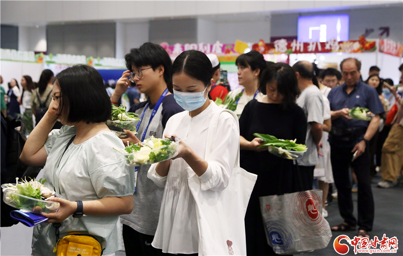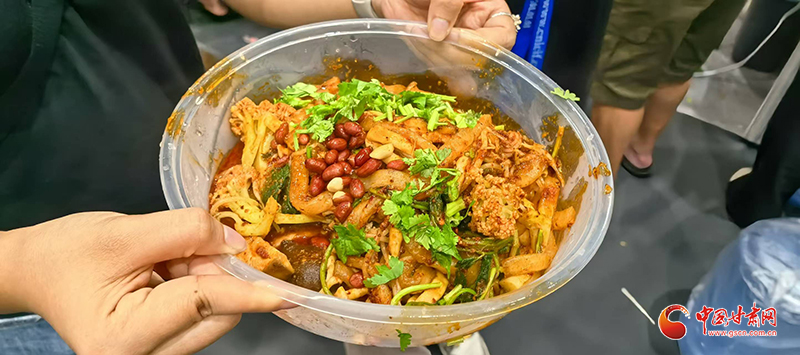 記者在現(xiàn)場看到,前往蘭州牛肉面、天水麻辣燙兩個(gè)展區(qū)品嘗美食的游客絡(luò)繹不絕。特別是在天水麻辣燙展區(qū),端著裝有各類蔬菜菜盆的食客排起了長隊(duì),紛紛翹首以盼,期待蔬菜下鍋,一嘗“麻”“辣”美味。