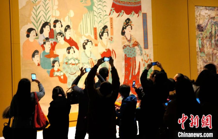 2017年1月,觀眾在成都博物館參觀“絲路之魂·敦煌藝術大展暨天府之國與絲綢之路文物特展”。樊甲山 攝