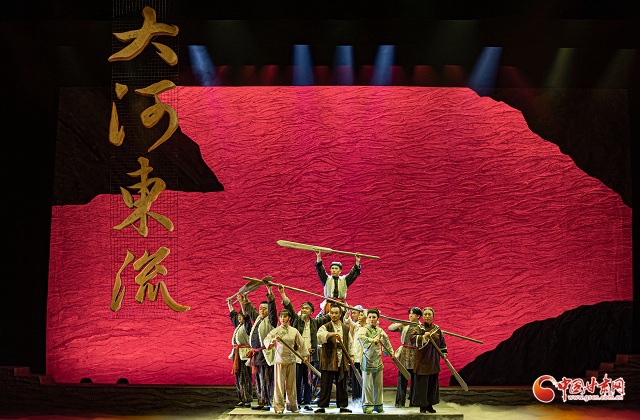 甘肅省隴劇院歷經(jīng)三年精心打造的隴劇《大河?xùn)|流》是國(guó)家藝術(shù)基金2024年度大型舞臺(tái)劇和作品創(chuàng)作資助項(xiàng)目。該劇以20世紀(jì)30年代末抗戰(zhàn)為背景,運(yùn)用具有地方特色的隴劇形式,生動(dòng)地描繪了大西北黃河邊的一群筏客子在國(guó)家危難之際,如何摒棄個(gè)人恩怨,團(tuán)結(jié)一致支援抗戰(zhàn),組成水上大型運(yùn)輸隊(duì),將大量物資安全送達(dá)抗戰(zhàn)前線,創(chuàng)造了“羊皮筏子賽軍艦”的傳奇故事。