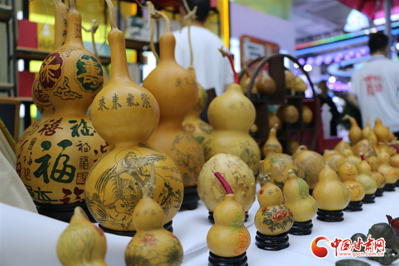 走進(jìn)第三十屆蘭洽會(huì)非遺文創(chuàng)館,陳氏雕刻葫蘆的第二代傳人陳兵正在展臺(tái)前為駐足參觀的群眾講解著刻葫蘆的過程。