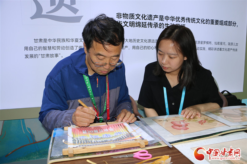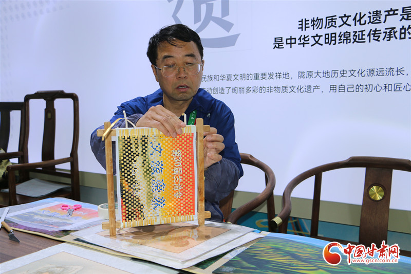 在第三十屆蘭洽會(huì)平?jīng)鲳^內(nèi),非遺傳承人魏巍正坐在桌前制作著泥金紙織畫。巧手之下,金色的“緯線”交織于“經(jīng)線”之間,經(jīng)緯交錯(cuò),乾坤自成。