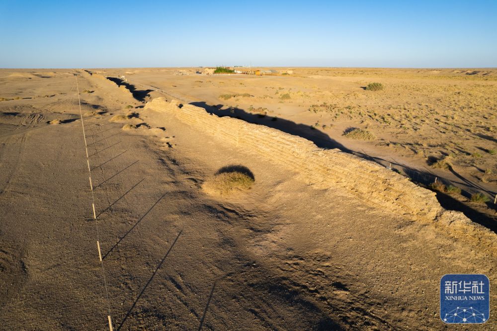 ↑這是張吉全和聞春瑜夫婦負責巡護的一段漢長城遺址(7月16日攝,無人機照片)。