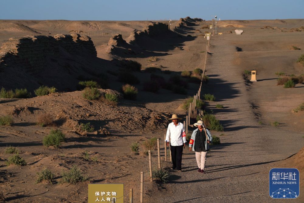↑7月16日,張吉全和聞春瑜夫婦沿著漢長城巡護。