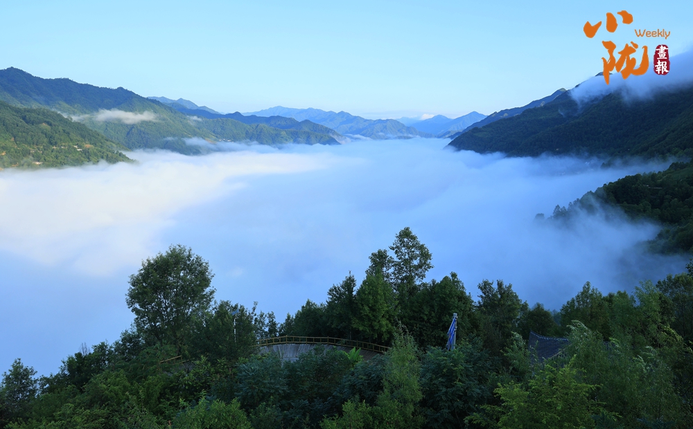蕩漾在翠綠山間的茫茫云霧,如飄逸的輕紗,舒卷自如,與青山、民居構(gòu)成了優(yōu)美畫卷。