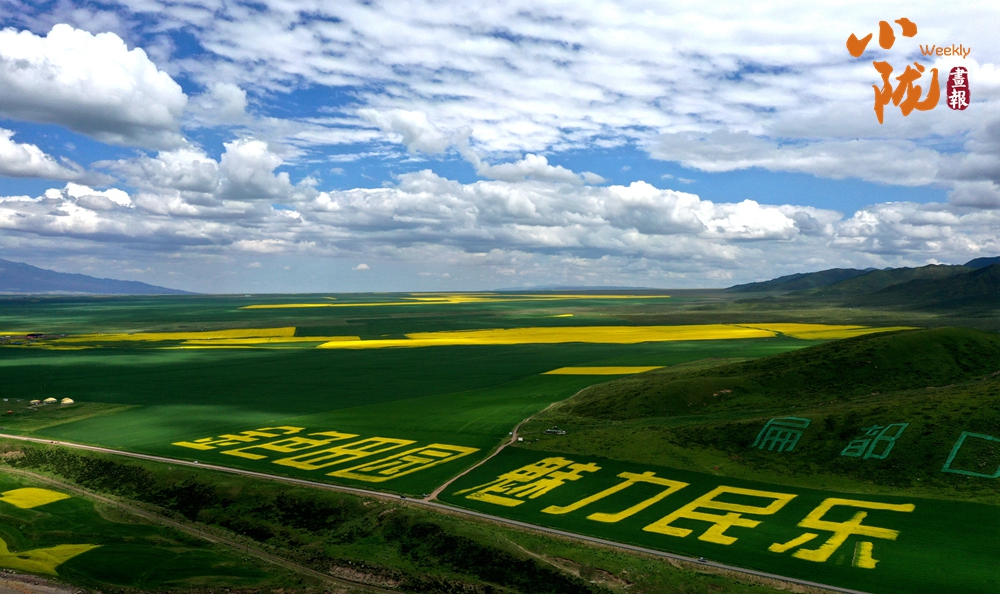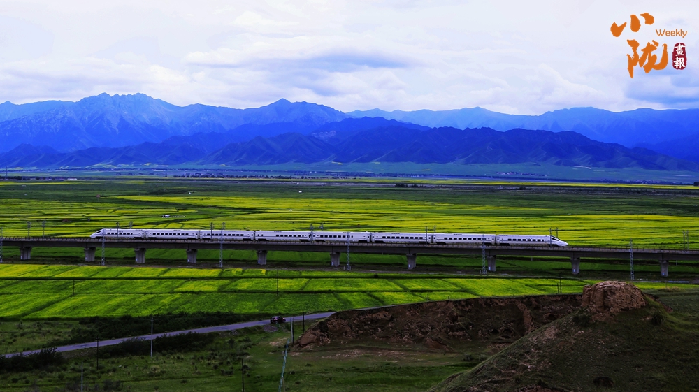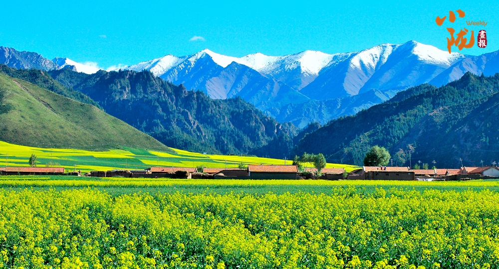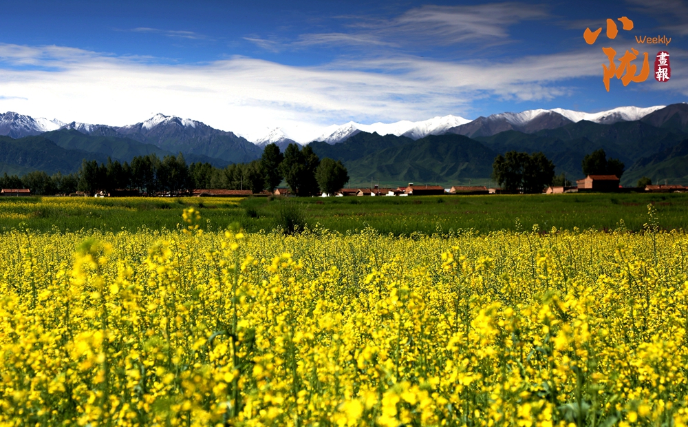 在藍天白云和祁連雪峰的映襯下,那盛開的油菜花、點綴在花海中的村莊人家,勾勒出一幅優美的田園風光畫卷。