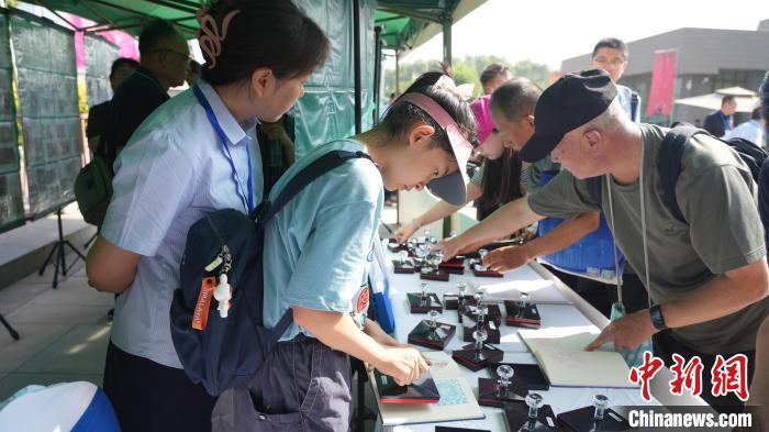 8月3日,《莫高窟(二)》特種郵票首發儀式上,民眾在蓋郵戳和紀念戳。戴文昌 攝