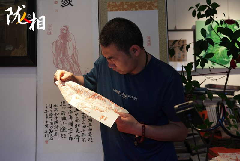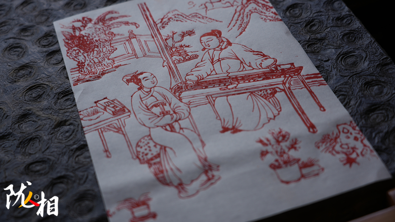 “木刻版畫最困難的步驟,就是能將原圖精準復刻,在雕刻過程中,稍有不慎便會出錯,需要全神貫注投入其中,才能在刀尖上誕生出精美的藝術品。”李安樂說,拓印前要進行刷色,首先需要制作顏料。他選擇了純色拓印,在朱砂粉中倒入明膠,加入水或酒稀釋,攪拌后顏料就制作完成了。接下來便是開始潤板,再開始刷色,最后將紙張覆蓋在木板上進行拓印,在拓印過程中,利用櫚擦或馬蓮進行摩擦拓印,等這一系列操作完成后,一幅栩栩如生的木刻版畫就呈現了出來。