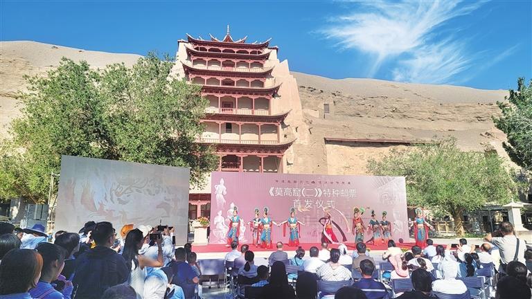 郵票被稱為“國家名片”,有濃縮的“百科全書”之美譽,是講好中國故事、傳播中國聲音、展現中國精神的有力載體。8月3日,《莫高窟(二)》特種郵票首發儀式在蘭州敦煌藝術館、敦煌莫高窟景區舉行。這是繼2020年《莫高窟》郵票發行后的又一組“莫高窟彩塑”主題郵票。省委宣傳部、省文旅廳、省郵政管理局、甘肅日報社、讀者集團等單位相關負責人出席儀式。