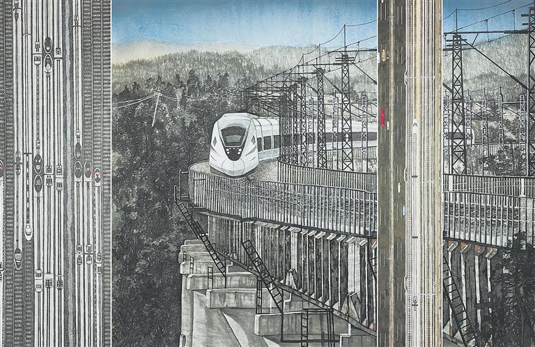 中國高鐵進大山 (中國畫) 劉鋒