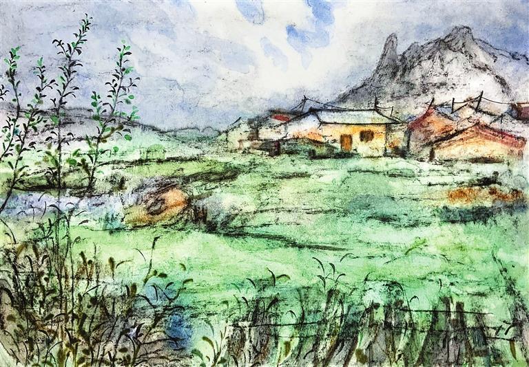 平常在畫室里畫畫時,喜歡用淡淡的墨色體會與宣紙碰撞所散發出的獨特墨韻。但是描摹西部,需要更加深厚、絢爛、豐富的色彩,才能表達我們的感受,寄予我們對這片土地的深情。離開故土,踏向遠方,那份對家鄉的無盡思念和深深眷戀,是每一位游子心中難以言喻的情感,如同無形的紐帶,將我們與故鄉緊緊相連。這種情感,如同西北高原上那連綿不絕的山脈,既遙遠又清晰,既冷峻又溫暖。