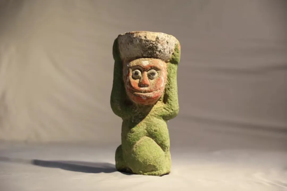 猴形頂燈臺,清代,該燈臺為圓柱形體,一石猴頭頂燈盞,猴雙腿跪于臺上,雙手上舉燈盞直到頭頂,底座為四面體。所謂“猴燈”,反過來說就是“燈猴”,正好與“登侯”諧音,有著封侯拜相的寓意。