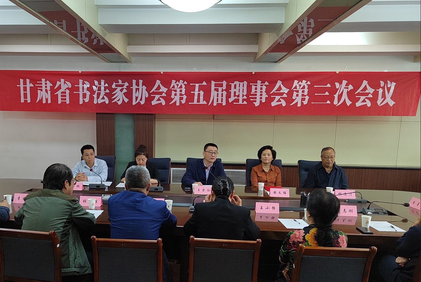 2024年9月13日下午,甘肅省書法家協(xié)會(huì)第五屆理事會(huì)第三次會(huì)議在蘭州召開。省文聯(lián)黨組書記、主席王登渤出席會(huì)議并講話,省文聯(lián)人事處處長(zhǎng)楊東英、省書協(xié)五屆理事會(huì)理事參會(huì)。會(huì)議由省書協(xié)常務(wù)副主席劉云鵬主持。