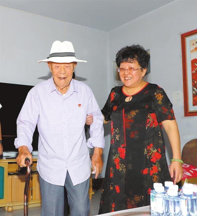 見到94歲的胡占學時,他正在小女兒胡英敏的攙扶下在屋里行走,盡管步履蹣跚,但依舊神采奕奕。