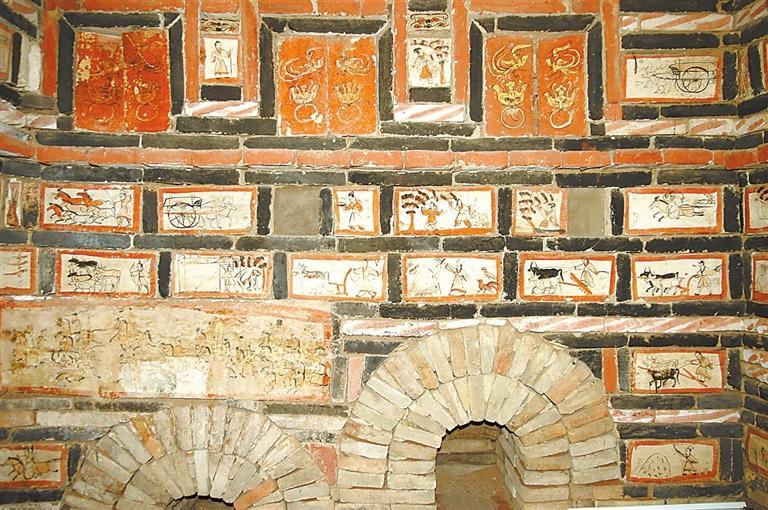 自漢代始,畫像磚墓與壁畫墓相繼涌現(xiàn),魏晉十六國(guó)、唐、宋、金、元等歷史時(shí)期得到顯著發(fā)展。尤以魏晉時(shí)期的畫像磚為最,古樸典雅,極具藝術(shù)價(jià)值,且作為兩漢至魏晉時(shí)期河西地區(qū)社會(huì)生活、生產(chǎn)活動(dòng)、宗教信仰、文化藝術(shù)等方面的直接見證,成為研究這一歷史階段不可或缺的重要史料。