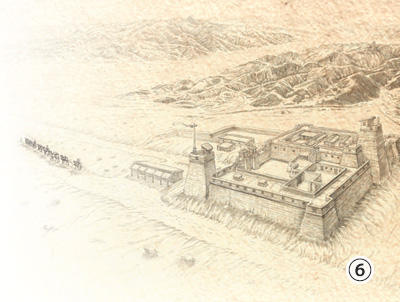 圖⑥:甘肅敦煌懸泉置復原手繪圖。 趙琛 繪 |