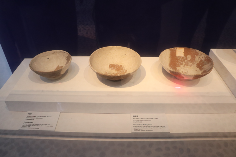 大地灣遺址出土的陶碗和圓足碗(距今約7800-7300年)。新華網發(郭林玉 攝)