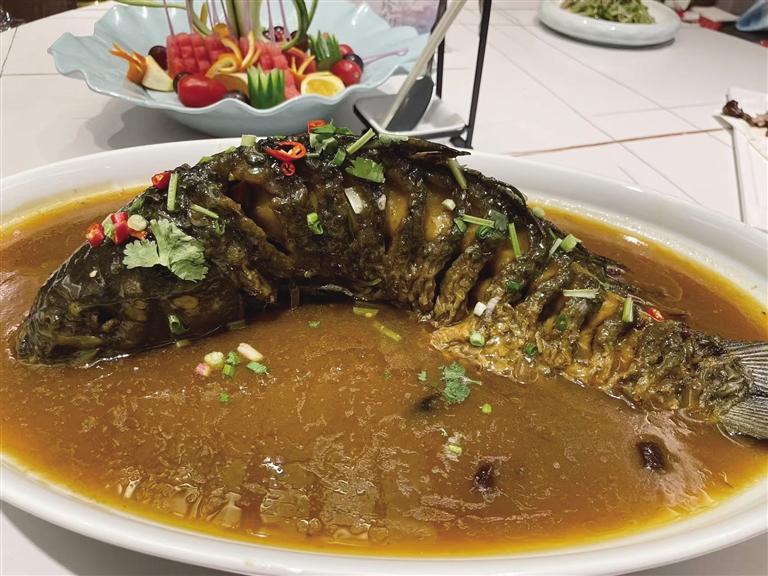 “黃河大鯉魚、蘭州糟肉、麻辣肉、老蘭州燴菜這些都是隴菜中的必點菜式!”董巖向記者介紹了店里的招牌菜:黃河宏豐鯉魚王,魚肉質鮮嫩細膩、營養豐富,在隴菜傳統烹飪技法中,紅燒黃河鯉魚堪稱經典做法,搭配廚師精致的排盤,色澤紅亮的魚身與青蔥翠綠相互映襯,香氣撲鼻,令人垂涎欲滴。蘭州糟肉在隴菜中是一道極具特色的傳統名菜,每逢佳節,它更是成為蘭州人家餐桌上必不可少的一道佳肴,承載著濃濃的節日氛圍和家的味道。精選肥瘦相間的五花肉,經過刀工、糟鹵腌制、放入蒸鍋中蒸熟等一系列操作,肉質變得軟爛,肥而不膩,糟香四溢。當入口品嘗時,那濃郁的糟香味瞬間在口中散開,與五花肉的醇厚口感完美搭配,相得益彰,讓人回味無窮。