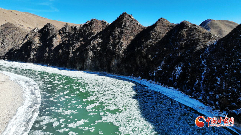 在黃河流經甘肅的首站——瑪曲縣木西合鄉境內的七仙女峰,此刻目睹黃河的壯麗風光,流凌的出現為這幅天然畫卷增添了一抹濃重的色彩,晶瑩剔透的冰凌順流而下,互相碰撞,隨著河水浩浩蕩蕩蜿蜒向前,在陽光的折射下,猶如珍珠瑪瑙般璀璨,鑲嵌在母親河的懷抱之中。