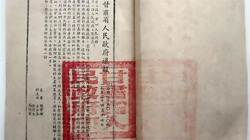 1950年1月8日,鄧寶珊正式就任甘肅省人民政府主席和省長。他感到責任重大,也對甘肅的發展充滿了希望。他經常到下面體察民情,足跡遍布全省的各個縣。在不能通車的偏遠地方,就是步行幾小時也要走到下面的村縣。1952年3月2日,鄧寶珊主席一行從蘭州出發,對武威和酒泉兩個專區展開視察,歷時一個多月,走訪了永登、古浪、山丹、張掖、敦煌等13個縣。山丹縣1950年劃歸武威專區,1955年后復歸張掖專區。