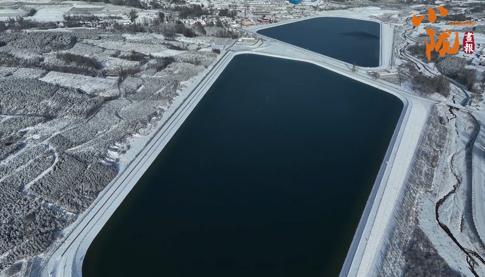 人工湖水面如鏡,與白雪相映成趣,宛如一塊無瑕的美玉鑲嵌在太子山下。