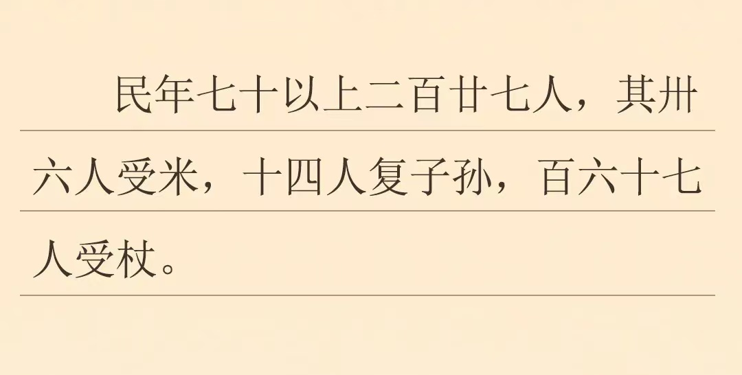 對(duì)民眾而言,朝廷的福利制度更是能帶來許多切實(shí)的好處。根據(jù)甘肅簡牘博物館所藏這枚養(yǎng)老簡,漢代的民眾養(yǎng)老制度主要內(nèi)容首先為王杖制度,即賜王杖,是從政治、法律與社會(huì)地位方面給予優(yōu)待;其次為高年復(fù)除,八十復(fù)算,可以幫子孫免除算賦;最后為受鬻法,即在仲秋八月發(fā)放粥米。簡文中所提到的這227名老人,分別享受以上各個(gè)優(yōu)待。