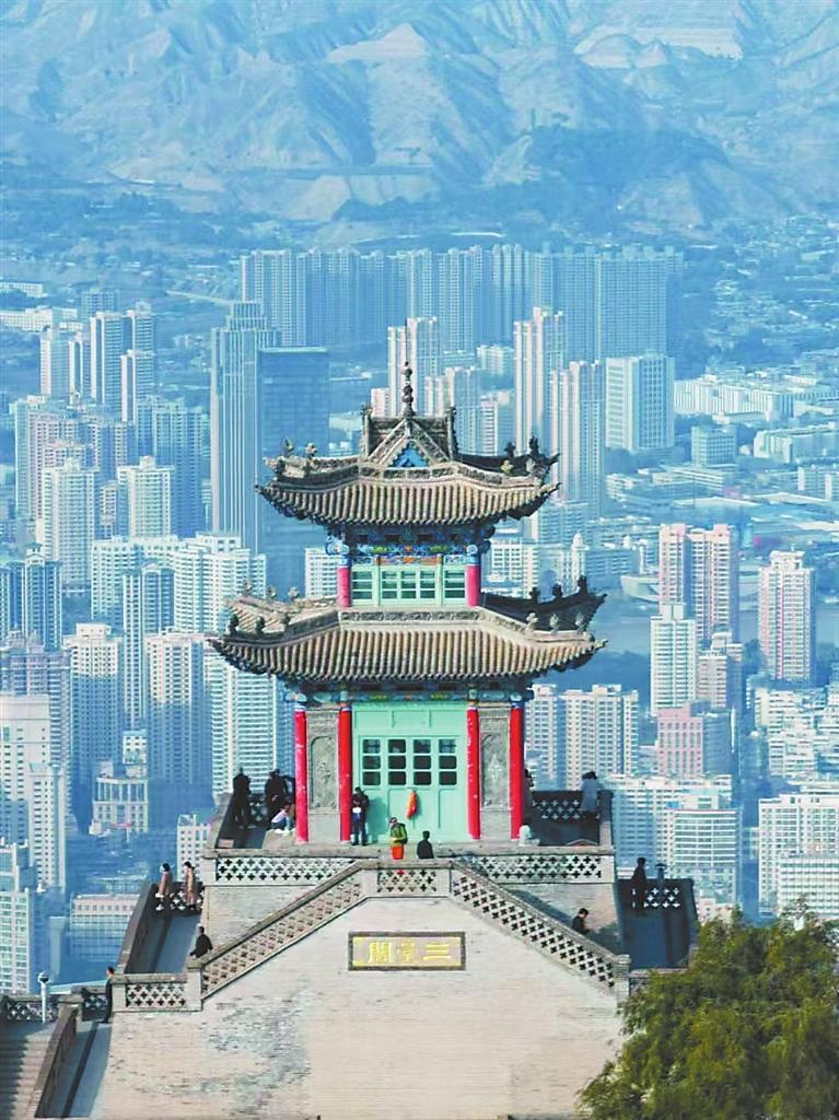 從蘭山俯拍蘭州城。新甘肅·甘肅日?qǐng)?bào)記者 丁凱 攝影