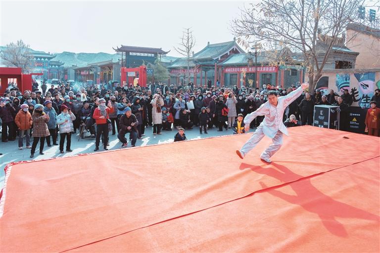 中國甘肅網1月6日訊 據蘭州日報報道(記者 閆龍龍 通訊員 陸奕璇)1月4日,青城古鎮2025年“喜迎新春,留住鄉愁”系列活動正式啟動,武術展演、年貨節、送春聯等各類傳統文化活動,帶動古鎮文旅消費市場持續火熱。