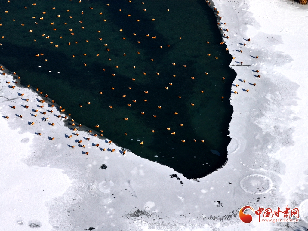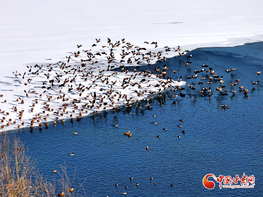 1月11日,甘肅省張掖國家濕地公園里,成群的赤麻鴨棲息覓食,成為濕地一道亮麗風景。