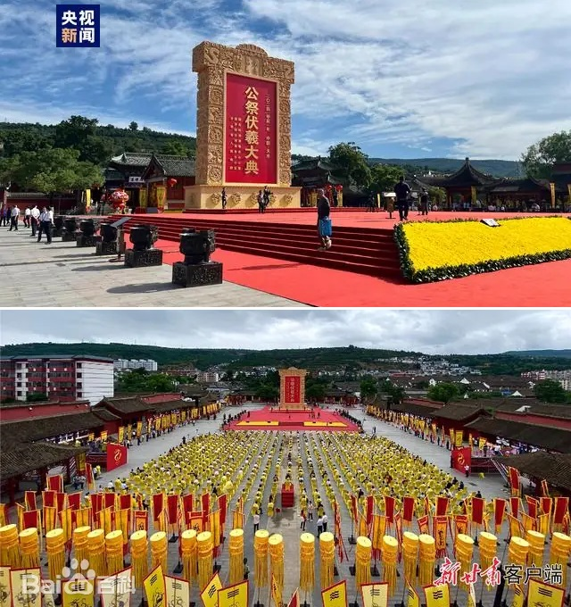 甘肅天水是伏羲的誕生地,自古以來就有祭祀伏羲的傳統(tǒng)。自1988年以來,每年6月夏至日舉辦的天水公祭伏羲大典,已成為海內(nèi)外同胞尋根祭祖的重要平臺(tái)。2006年,“太昊伏羲祭典”被列入首批國家級(jí)非物質(zhì)文化遺產(chǎn)名錄。2014年起,天水每年與臺(tái)灣地區(qū)同日同時(shí)舉行海峽兩岸共祭伏羲典禮。