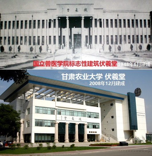 1946年10月國立獸醫(yī)學(xué)院成立后,于1948年6月建成了當(dāng)年蘭州最雄偉壯觀的建筑——伏羲堂。有深厚國學(xué)功底的校長盛彤笙,為紀(jì)念人文始祖伏羲氏在認(rèn)識(shí)自然、適應(yīng)自然、改造自然和發(fā)展生產(chǎn)生活的過程中,所進(jìn)行的一系列造福人類的發(fā)明創(chuàng)造,將這幢教學(xué)大樓命名為“伏羲堂”,并親自撰寫了一篇銘文《伏羲堂記》,“用追前烈,以志建堂之艱難”。