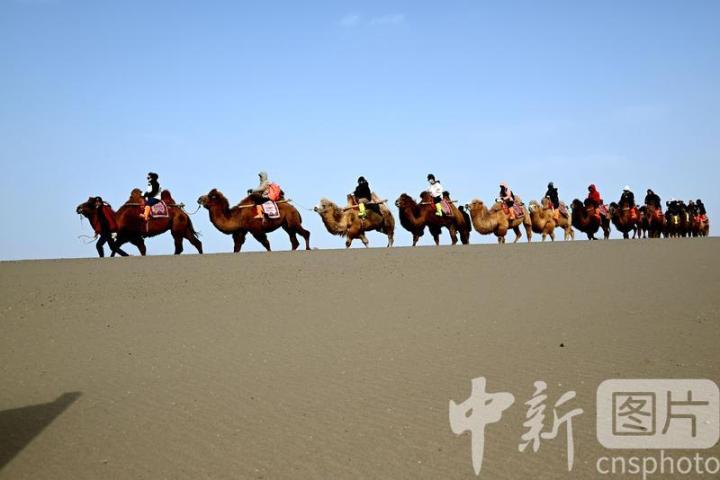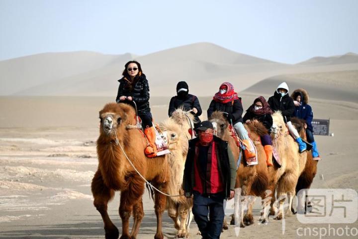 2025年3月2日,游客在甘肅省敦煌市鳴沙山月牙泉景區(qū)游覽。從3月1日開始,至3月31日,甘肅省敦煌市鳴沙山月牙泉景區(qū)、世界文化遺產(chǎn)玉門關遺址、敦煌雅丹世界地質(zhì)公園三大市屬景區(qū)推出門票半價優(yōu)惠政策,吸引游客走進敦煌,欣賞大漠風光,體驗絲路風情。中新社發(fā) 張曉亮 攝