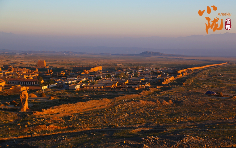 在黛藍(lán)色山脈的映襯下,漢明長城蜿蜒并行,高于地面的黃色城墻是明長城,而顏色稍深的壕溝是漢長城,兩條跨越千載的古長城最近處不過十余米,仿佛攜手講述著遠(yuǎn)古的故事……它們也猶如兩位忠誠的衛(wèi)士,守護(hù)著這片古老的土地,也見證了絲綢之路的興衰變遷。