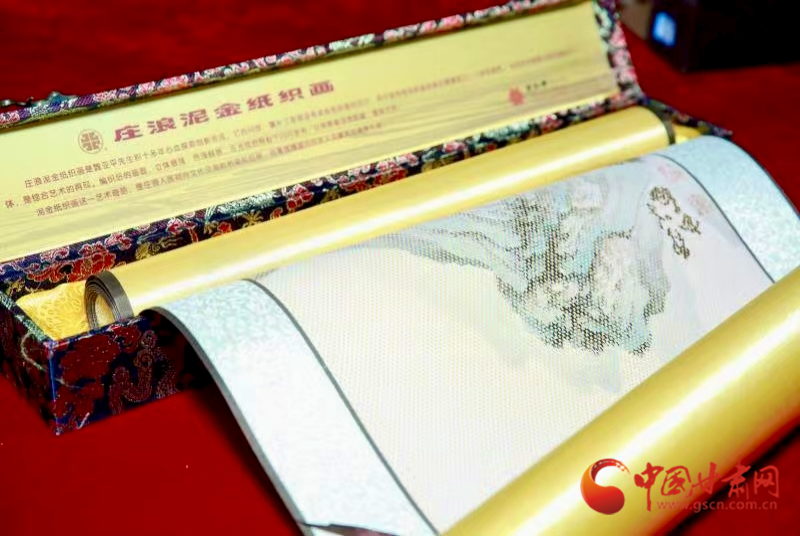 編織后的莊浪泥金紙織畫,色澤鮮明,立體感強,在光線照射下閃閃發光,令人浮想聯翩,意味無窮。畫面栩栩如生,仿佛每一根線條都在訴說著古老的故事,展現出獨特的藝術韻味。