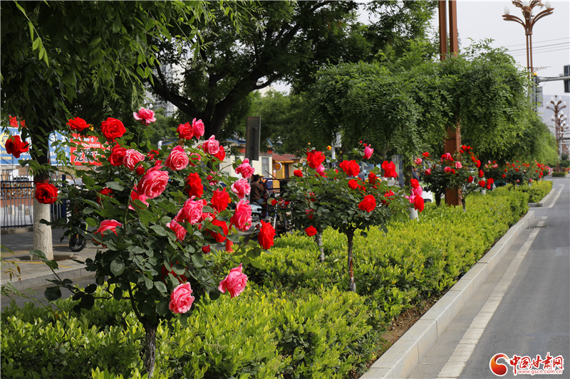 近日,隨著氣溫逐漸升高,甘谷縣道路兩旁的綠化月季迎來了盛花期,將城市裝點得格外美麗。無論是主干道還是小巷,色彩斑斕的月季花海,成為了市民眼中的一道亮麗風景線。